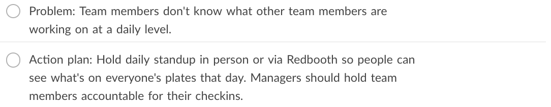 - Execution questions – problems that impact work and workflow, including those around pace, people, and quality