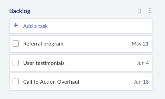 The “Backlog” phase is when you really start to think about strategy and results. This stage is the perfect time to conduct a pre-mortem analysis of each project. In your analysis, you can anticipate problems and create action plans for preventing project failure.