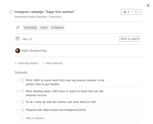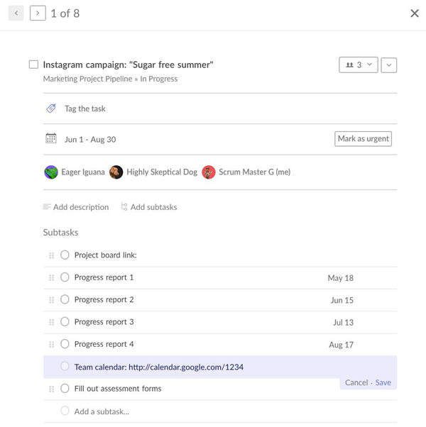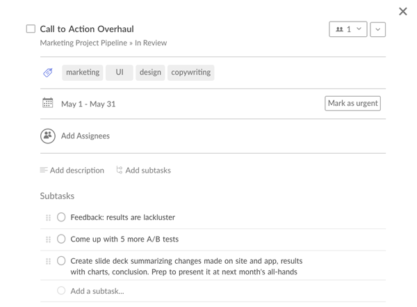 You can organize pipelines by client, department, project type, or even company value. A pipeline for “customer-obsessed,” for instance, will show all the projects that improve customer experience.